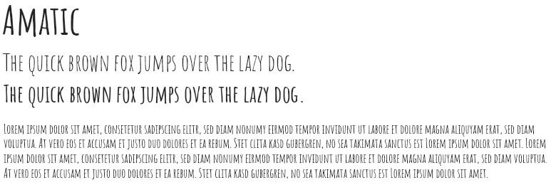 Die Amatic ist eine sehr beliebte Script Schrift. Sie eignet sich vor allem für DIY Themen und ist sehr simpel. Damit ist diese Schrift zwar leicht zu lesen (für eine Handwritting Font) – sollte dennoch nicht als Fließtext Schrift eingesetzt werden. Die Amatic ist meine zweite Wahl wenn es um Script Fonts geht. Bei Google Web Fonts steht sie in zwei Schnitten bereit.