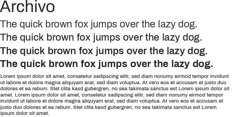 Die Archivo Schrift von Omnibus-Type wurde gleichermaßen für Bildschirme und Printprodukte optimiert. Sie wurde von der Chivo Schrift inspiriert. Eigentlich für Highlights und Überschriften entwickelt, eignet sich die Archvio auch für Fließtext und kleine Bildschirmgrößen. Mit acht Schnitten gibt sie dem Webdesigner viele Einsatzmöglichkeiten.