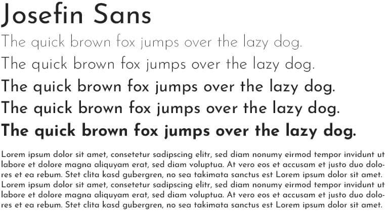 Die Josefin Sans wurde 2014 von Santiago Orozco entwickelt. Im Fokus stand die Erstellung einer Schrift, die geometrisch, elegant gleichzeitig jedoch traditionell sein sollte. Herausgekommen ist eine Mischung aus Rudolf Kochs „Kabel“, Rudolf Wolfs „Memphis“ und Paul Renners „Futura“. Besonderen Wert wurde hier auf den skandinavischen Designeinfluss gelegt. Die Josefin Sans sollte jedoch nur als Headline-Schrift verwendet werden. Dafür hat sie jedoch eine Menge an Charakter und Ästhetik. Übrigens gibt es dazu auch noch die Josefin Slab als Serifen Schrift. Mehr Infos zur Josefin Sans.