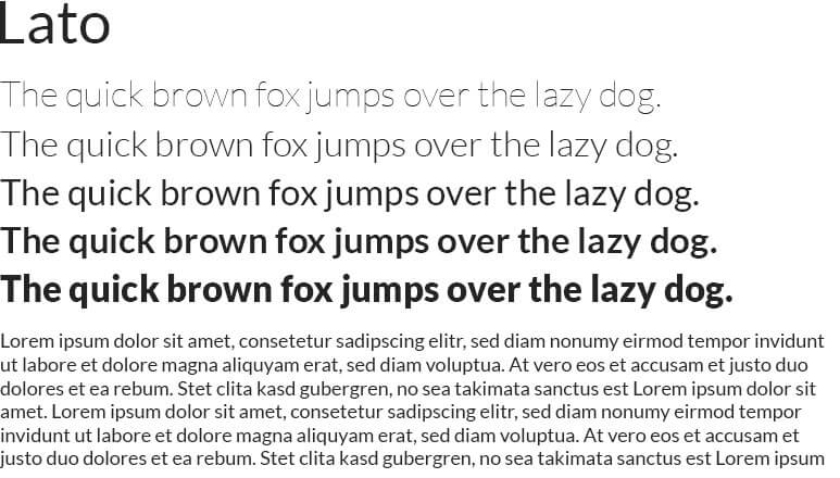Die Lato wurde von Łukasz Dziedzic im Jahr 2010 für eine polnische Bank entworfen. Lato ist übrigens polnisch und bedeutet „Sommer“. Die Lato gibt es in neun Schriftschnitten und lässt so viele Möglichkeiten des Einsatzes. Ich benutze die Lato auch für meinen Blog als Light Variante. Dziedzic wollte eine transparent erscheinende Font im Fließtext, jedoch auch eine charakteristische Schrift, wenn es um große Letter geht. Die halbrunden Details geben der Lato eine warme Ausstrahlung, während die starke Struktur für Stärke und Seriösität sorgt. Deshalb eignet sich diese Google Webfont ebenfalls für viele Anwendungen – egal ob Web oder Print.