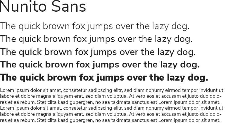 Die Nunito Sans wurde von Vernon Adams entwickelt. Durch ihre ausgeprägte Breite eignet sich die Schrift nur bedingt für Fließtexte auf kleinen Bildschirmen. Dennoch besticht sie durch ihren eigenen Charakter. Schlicht und schön. Mit 14 Schnitten ist diese Schrift sehr vielseitig. Zudem gibt es noch eine Serif-Version (Nunito) der Nunito Sans.