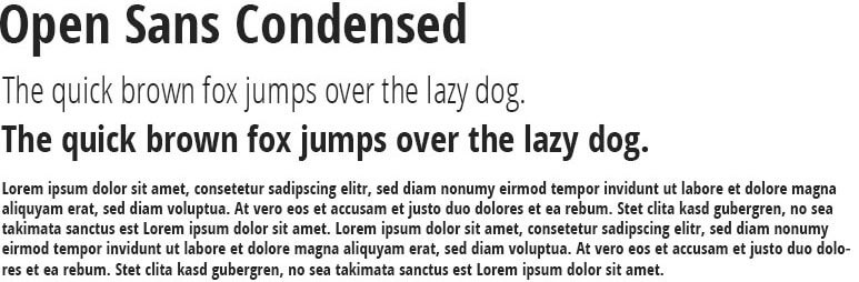 Die Open Sans Condensed ist laut Google auch eine sehr beliebte Schriftart. Dennoch ist von der Verwendung der Open Sans Condensed abzuraten – sofern du keinen triftigen Grund hast. Durch die Stauchung wird natürlich die Lesbarkeit verringert. Deshalb solltest du diese Schriftart nur einsetzen, wenn dir sehr wenig Platz zur Verfügung steht.