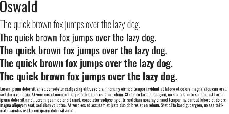 Die Oswald Font wurde von Vernon Adams 2011 als Remake der klassischen „Alternate Gothic“ entwickelt. Die Anpassung wurden für das Web vorgenommen um eine bessere Anzeigequalität auf Pixel-Screens zu erzeugen. Die Oswald eignet sich gut für knackige Headlines. Mit 6 Schriftschnitten lässt sie dir auch genügend Spielraum für den Einsatz. Über die Jahre erhielt die Oswald immer wieder Updates und Überarbeitungen.