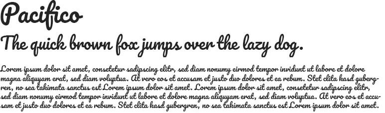 Die Pacifico ist ebenfalls von Vernon Adams und ist inspiriert von der amerikanischen Surfkultur der 1950er Jahre. Die Pacifico ist wohl eine der wenigen Handwritting Fonts, die trotz ihrer Verspieltheit sehr gut lesbar ist. Natürlich eignet sich die Pacifico nur als Headline und sollte nicht als Fließtext Schrift eingesetzt werden. Mit nur einem Schnitt lässt diese tolle (oder vielleicht beste) Handwritting Google Font nicht viele Möglichkeiten der unterschiedlichen Gestaltung.