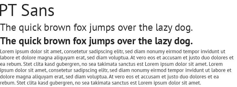 Die Public Type oder PT Fonts (PT Sans, PT Serif, PT Mono) wurden 2009 von Alexandra Korolkova für das russische Kommunikationsministerium erstellt. Dabei enthält die Webfont die lateinischen Schriftzeichen, wie auch die kyrillischen Zeichen. Damit werden viele russische Sprachen abgedeckt. Dennoch erfreut sich die PT Sans auch weltweit großer Beliebtheit. Die PT Sans wurde auf eine gute Lesbarkeit optimiert und eignet sich besonders dann, wenn wenig Platz vorhanden ist. In besonders kleinen Schriftgrößen bleibt die PT Sans sehr gut lesbar.