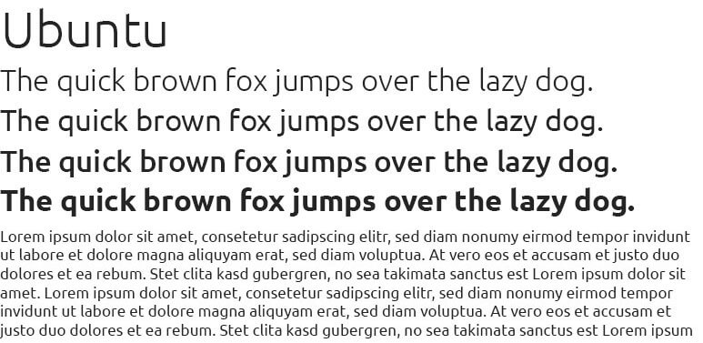 Die Ubuntu wurde von Dalton Maag für das gleichnamige Betriebssystem im Jahr 2010 entwickelt. Mittlerweile findest du diese Webfont auch unter den beliebtesten Google Fonts. Mit seinen acht Schriftschnitten und seiner modernen Anmutung kein Wunder. Die Ubuntu ist eine sehr schöne Schirft, die zwar einen technischen Charakter hat, jedoch nicht so seelenlos wirkt wie andere technische Fonts. Deshalb eignet sich dieser Font auch für nicht technische Anwendungen. Die Ubuntu wirkt zudem sehr frisch und ist zurecht unter den besten Google Fonts.